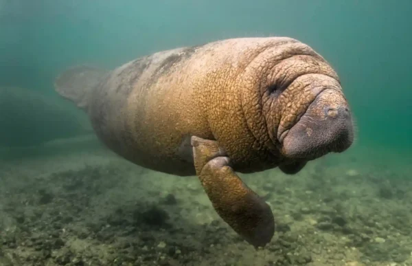 O peixe boi que vive entre árvores centenárias no coração histórico da cidade de Belém