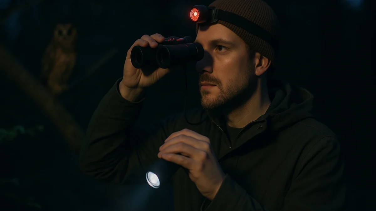 Muita gente acredita que para observar aves noturnas é preciso ter binóculos caros ou equipamentos sofisticados. A realidade é outra. Um binóculo simples já ajuda bastante, mas em muitos casos nem é indispensável. O mais importante é contar com uma lanterna de luz fraca ou vermelha, que não assuste as aves. Lanternas de cabeça deixam as mãos livres e facilitam o registro.