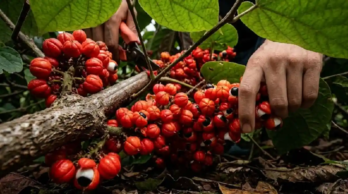 O guaraná (Paullinia cupana) é um cipó nativo da Amazônia e suas sementes possuem uma concentração de cafeína que pode chegar a 5% de sua massa seca, uma quantidade cinco vezes superior à encontrada nos grãos de café, o que o torna o estimulante natural mais potente do mundo. Esta característica não é apenas uma curiosidade biológica, mas a base de uma relação milenar entre a planta e os povos da floresta. Enquanto o mundo o conhece como ingrediente de refrigerantes e suplementos energéticos, na região de Maués, no estado do Amazonas, o guaraná é um elemento sagrado, um patrimônio cultural e um exemplo vivo de como a bioindústria sustentável pode gerar valor sem destruir a biodiversidade.