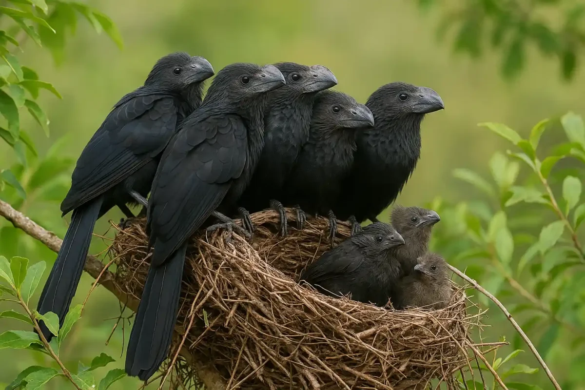 A palavra-chave “anu-preto” muitas vezes remete apenas ao visual negro e à presença comum em ambientes rurais e periurbanos. Mas o que realmente chama atenção é o sistema de criação conjunta: em vez de um casal defender seu ninho, um grupo inteiro de até 15 indivíduos compartilha a mesma estrutura, construída de forma cooperativa.
