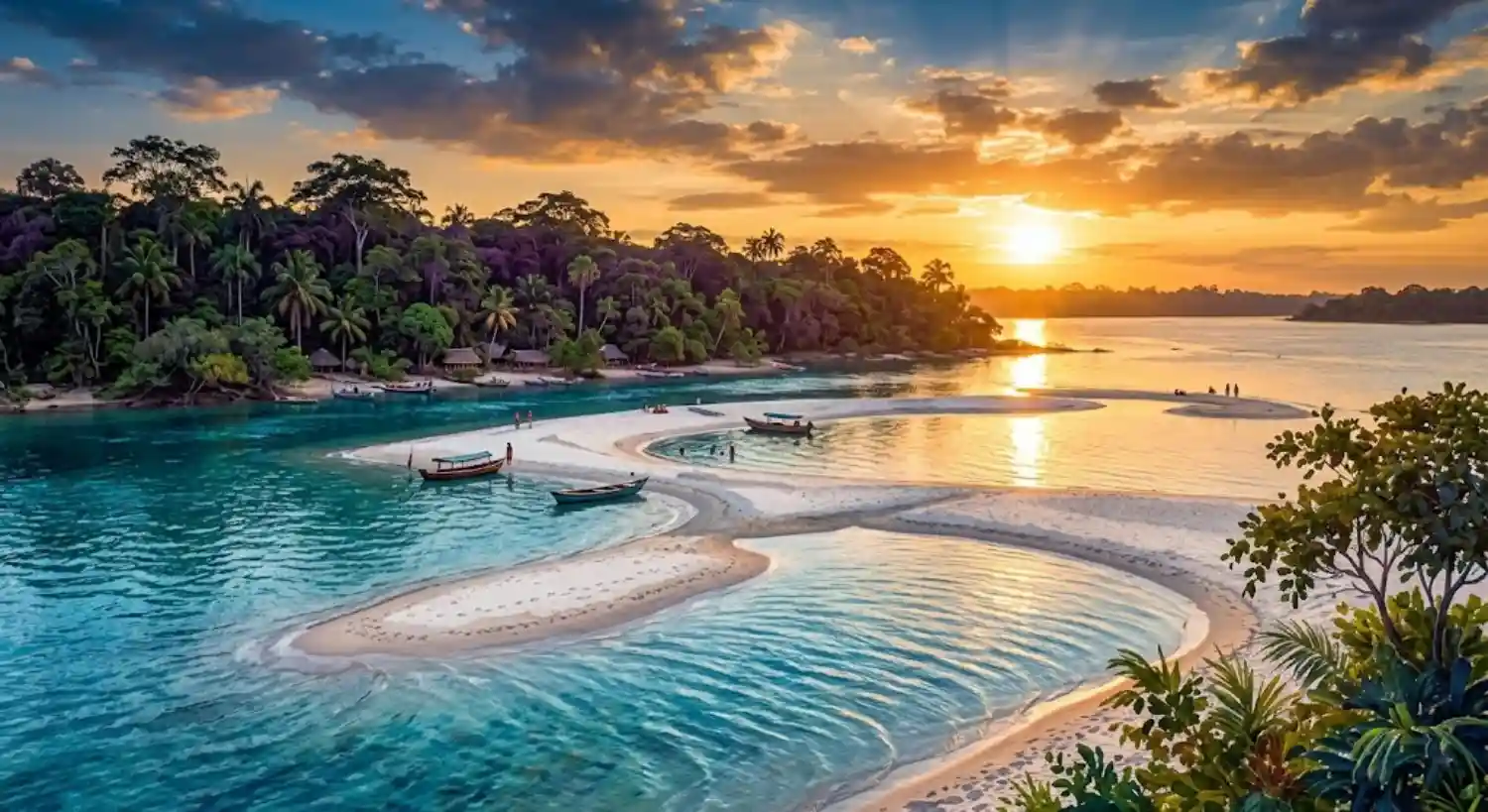 Escondida no município de Santarém, a vila de Alter do Chão abriga um dos espetáculos geológicos mais impressionantes do mundo: praias de areias brancas e águas transparentes que surgem no meio da maior floresta tropical do planeta. O fato que mais surpreende os geógrafos e visitantes é que essas águas não são turvas como a maioria dos rios amazônicos, devido à bacia do Rio Tapajós correr sobre um leito de rochas antigas e areia siliciosa, que funcionam como um filtro natural. Esse ecossistema único cria um contraste visual onde a floresta densa e verdejante encontra praias que nada perdem em beleza para os destinos litorâneos mais famosos do globo, mas com o diferencial de serem banhadas por água doce e morna.