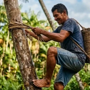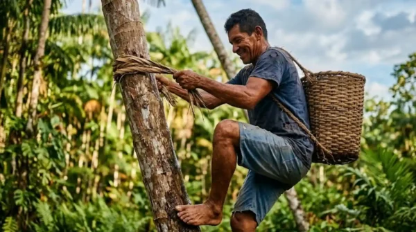 Neste Dia do Trabalhador, conheça os peconheiros que escalam palmeiras de 20 metros para colher o açaí e sustentar suas famílias na floresta
