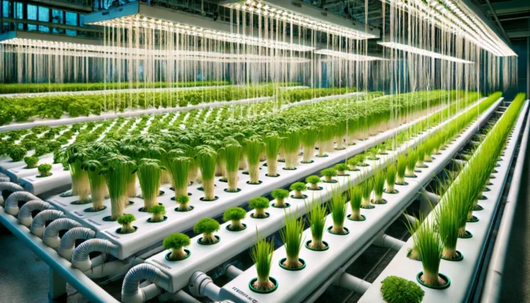 – Sistemas hidropônicos de circulação fechada que reciclam a água e os nutrientes.