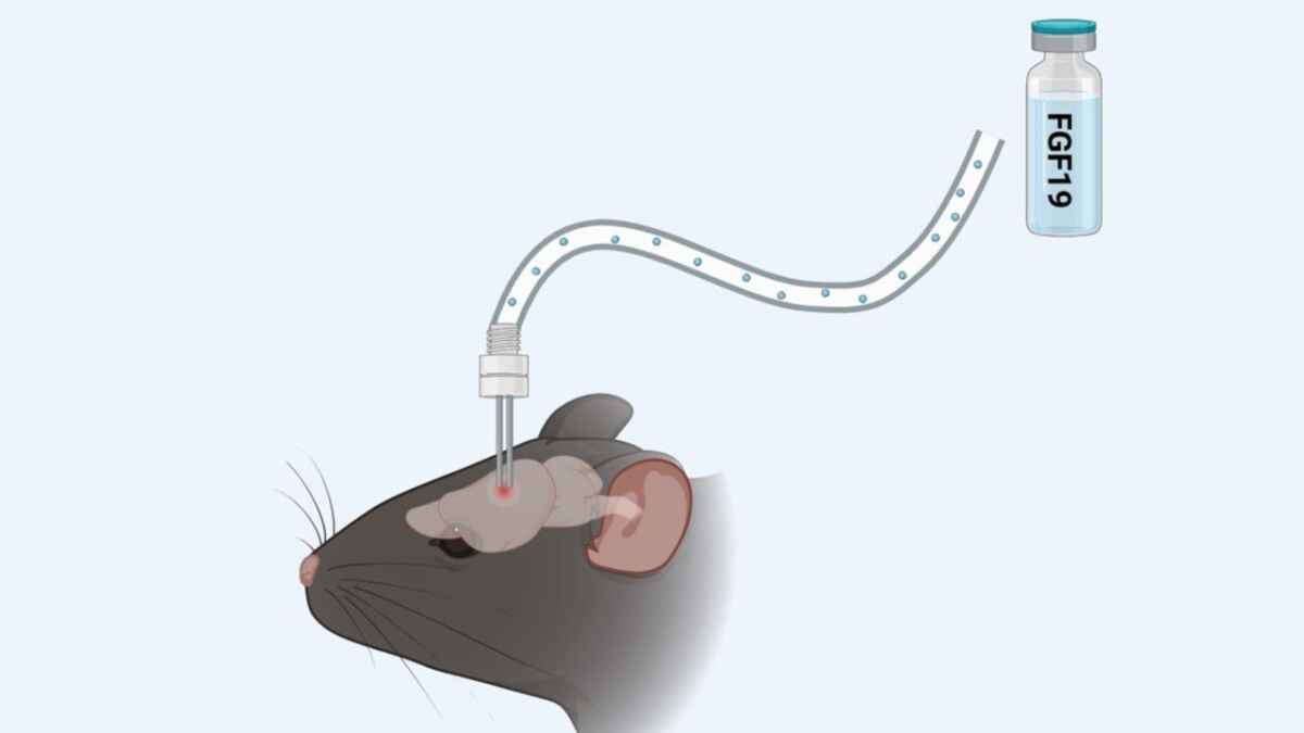 Camundongos foram divididos entre grupos com dieta normal e dieta rica em gordura. Em seguida, receberam FGF19 diretamente no cérebro. Os animais que receberam o hormônio perderam peso, queimaram mais gordura e tiveram melhora na homeostase da glicose.