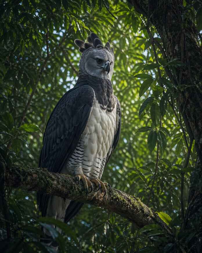 A anatomia da harpia é um exemplo de eficiência evolutiva. Além das garras imponentes, seu bico curvo e forte é ideal para rasgar carne. Suas pernas são musculosas e projetadas para suportar impactos durante o ataque. A visão é outro diferencial, permitindo detectar movimentos sutis entre folhas e galhos. Até mesmo o padrão de penas contribui para sua camuflagem, ajudando a ave a se misturar ao ambiente enquanto observa suas presas.