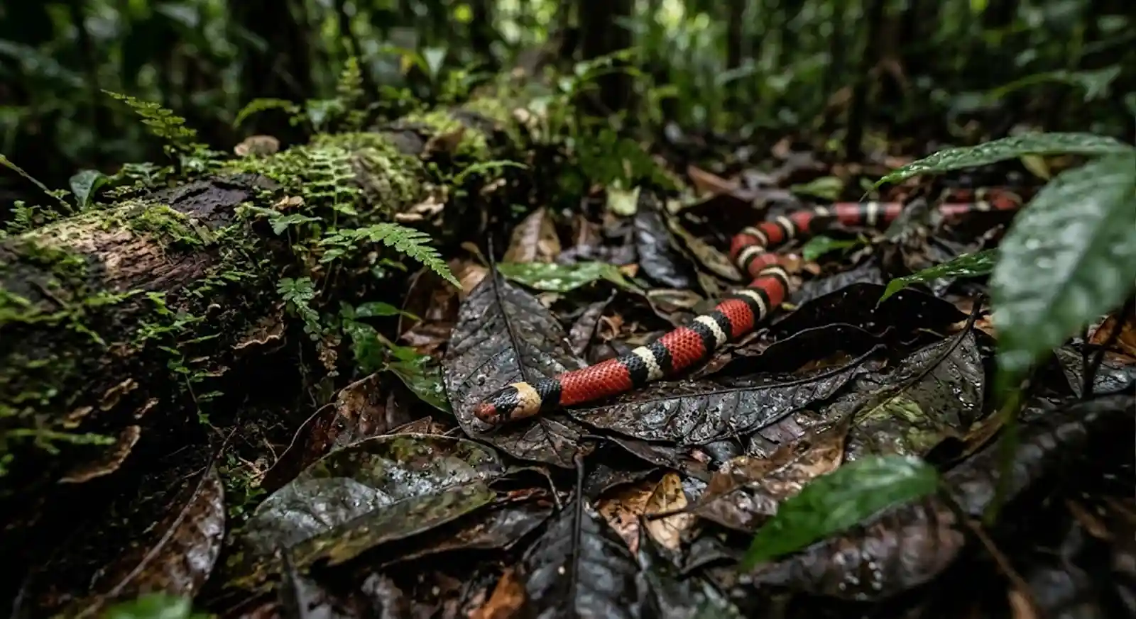 Quando nós falamos sobre a vasta biodiversidade do Norte do país, o grupo das serpentes do gênero micrurus Amazônia merece um destaque todo especial. Essas são as corais verdadeiras e letais da nossa região, e elas adoram viver em ambientes com muita umidade, escondidas sob grossas camadas de folhagens secas acumuladas no chão escuro das matas e muito próximas das margens dos nossos igarapés. Diferente de outras serpentes venenosas famosas, as corais possuem presas de veneno fixas e muito curtas, o que significa que elas precisam “mastigar” a pele da vítima por alguns segundos para conseguir injetar a peçonha. Justamente por terem a estrutura da boca muito pequena, os acidentes graves são bastante raros nas estatísticas do Ministério da Saúde, ocorrendo quase sempre quando alguma pessoa tenta pegar o animal silvestre com as mãos desprotegidas.