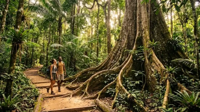 A Floresta Nacional do Tapajós (Flona) abriga exemplares de árvores, como a lendária Samaúma, que ultrapassam os 500 anos de idade e possuem sistemas radiculares tão vastos que podem ser ouvidos “se comunicando” através de batidas nos troncos. Com mais de 527 mil hectares de área protegida, esta unidade de conservação no Pará é um dos raros lugares onde o visitante pode tocar em seres vivos que já estavam lá antes da colonização europeia na América. A Flona não é apenas um banco de biodiversidade, mas um museu vivo da história natural brasileira, oferecendo uma infraestrutura de trilhas que conecta o público à essência da floresta primária de forma segura e educativa.