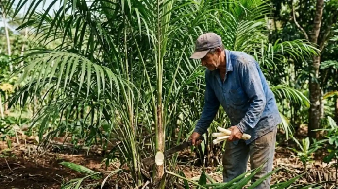 Diferente do palmito juçara, que morre com a colheita, o palmito-pupunha sustentável prospera através do rebroto. A colheita do estipe principal estimula novas hastes, garantindo uma produção contínua em ciclos de 18 meses. Essa característica torna a pupunha uma alternativa ecológica e economicamente viável, preservando a planta e o ecossistema.