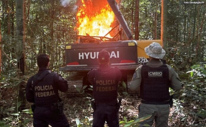 A Polícia Federal, em parceria com o Instituto Chico Mendes de Conservação da Biodiversidade (ICMBio), realizou uma operação para combater o garimpo ilegal e o desmatamento na região de Itaituba, no Pará.