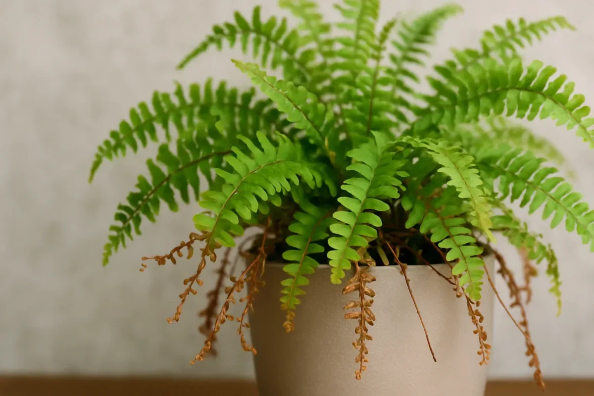 Samambaias adoram umidade. Se a planta está amarelada por ar seco ou deficiência nutricional, aumentar a umidade e aplicar um adubo suave pode ajudar bastante.