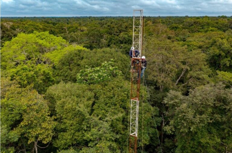 O Instituto de Desenvolvimento Sustentável Mamirauá (IDSM), ligado ao Ministério da Ciência, Tecnologia e Inovação (MCTI), inaugurou, em dezembro, a primeira torre dedicada ao monitoramento da emissão de gases de efeito estufa em florestas de várzea da Amazônia. Localizada na Reserva Mamirauá, a torre tem 48 metros de altura e se ergue acima da copa das árvores, destacando-se na paisagem amazônica.